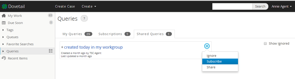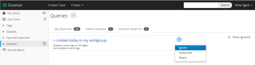 You can choose to Ignore a shared query, which will hide it from the list, or Subscribe to it, which moves it to your Subscriptions tab.
