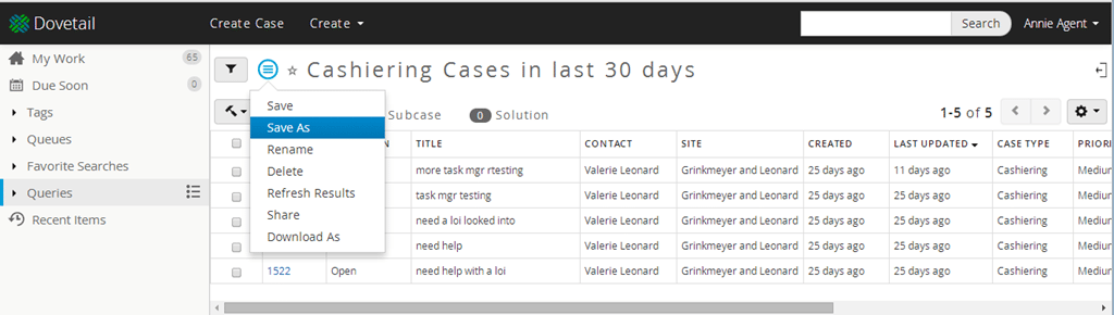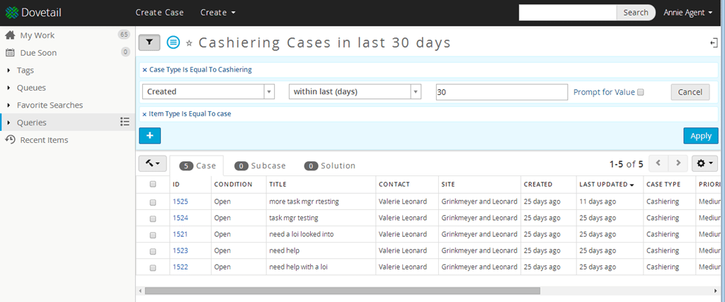 We’ve now filtered our results even more – items created in the last 30 days with a case type of Cashiering