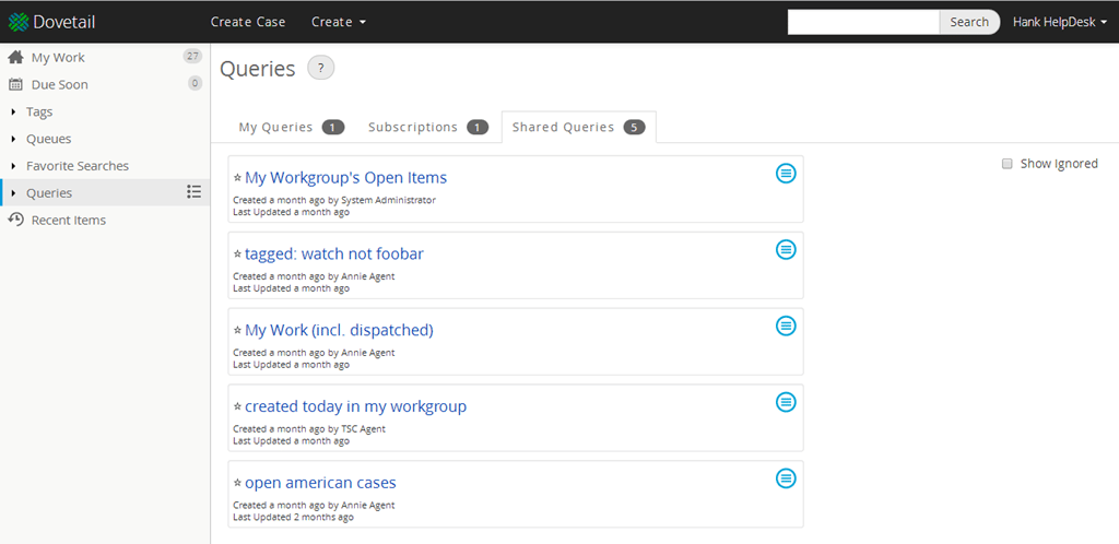If a query has been shared to a user, it will show up on the Shared Queries tab of the Queries page.