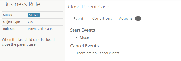 As another example, you could use this same process to automate closing a case when all of its subcases are closed.